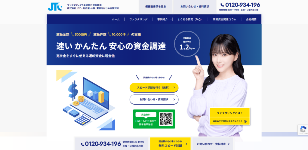 | JTC | 2社間/3社間 | 最短即日 | 2%~ | 上限なし | 法人専門・対面相談可能 |