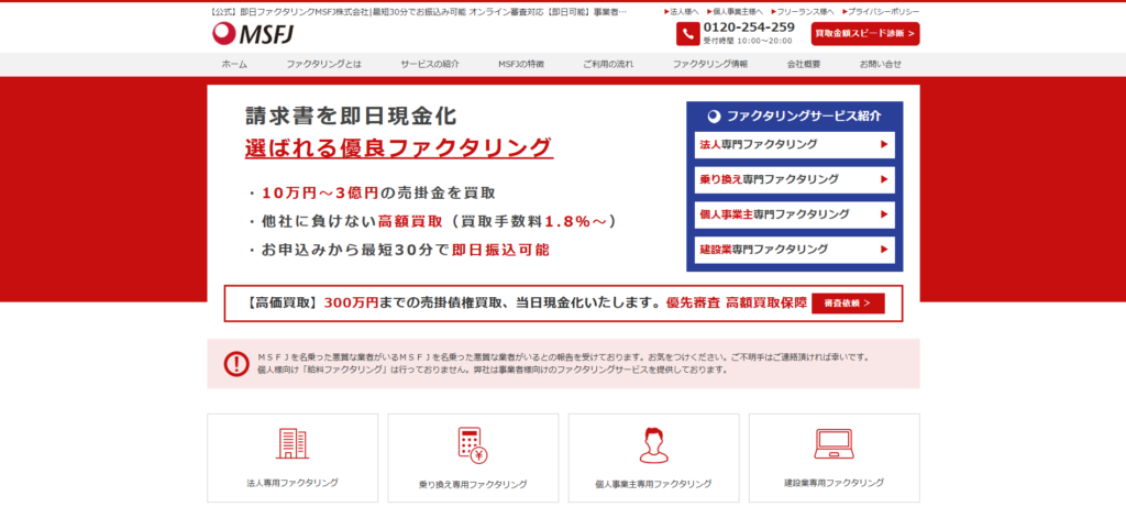 • MSFJ プレミアムファクタリング(手数料1.8%~9.8%)